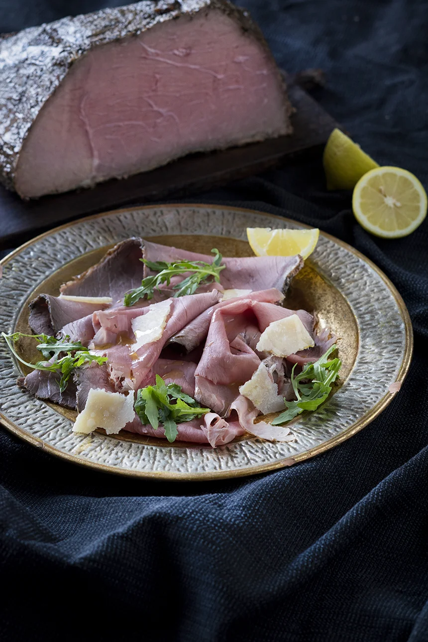 Fabriqué avec de la viande bovine fraîche (noix inférieure). Une fois salée et aromatisée, la viande repose pendant quelques jours dans la chambre froide Ensuite, elle est cuite au four dans de l’huile d’olive.