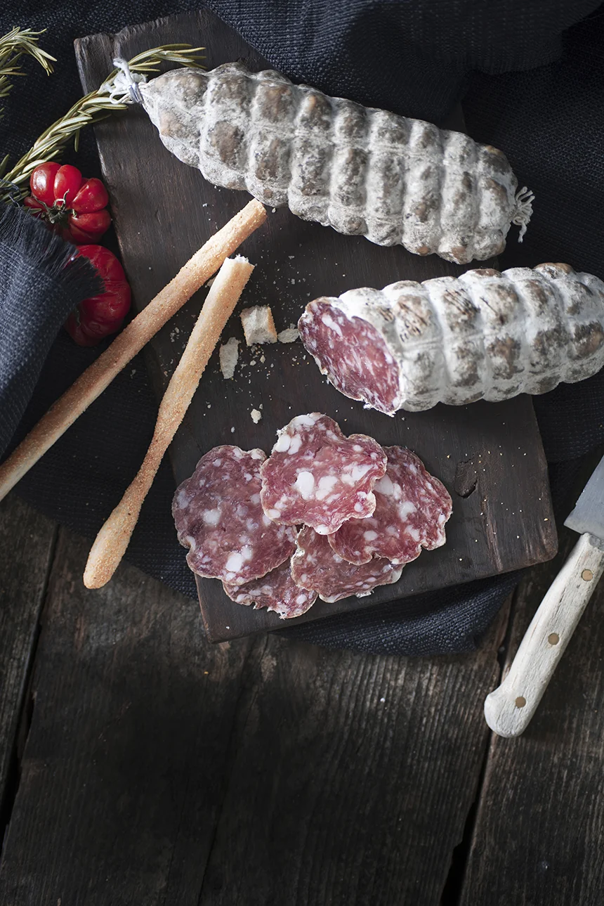 Cette charcuterie peut être proposée en entrée accompagnée de bons vins rouges qui en exaltent la saveur et qui permettent de redécouvrir le plaisir authentique de la bonne chère. Les parties utilisées sont la tranche maigre et la cuisse de porc.